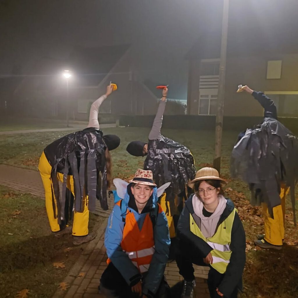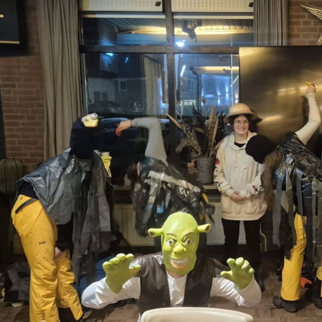 Onze Gidsen waren uitgenodigd voor een verkleedfeest bij Shrek. Ze hadden als verkleedthema struisvogels gekozen. De eerste twee uur van de droping waren onze dames een beetje verkeerd gelopen, maar gelukkig is uiteindelijk alles goed gekomen. In de ochtend was er veel vla over, maar ja alles moet op….